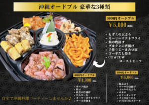 テイクアウト限定『沖縄オードブル』がオススメで、一番人気は【5000円オードブル】です🎵