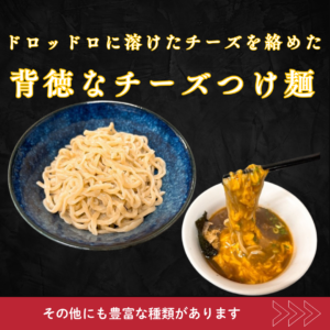 ドロッドロに溶けたチーズを絡めた背徳な気分を味わえる【チーズつけ麺】も、ぜひ食べてみてくださいね😁