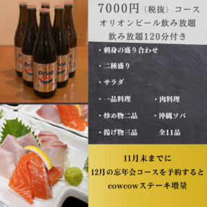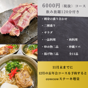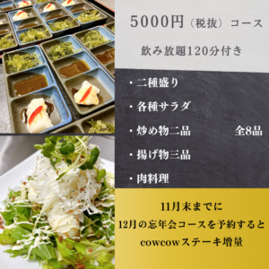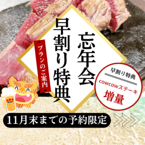 11月末までに12月の忘年会コースを予約されると、cowcowステーキ増量します🍖